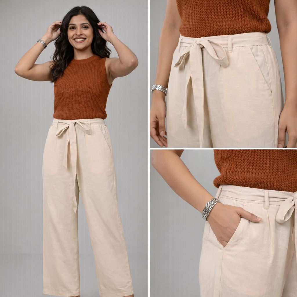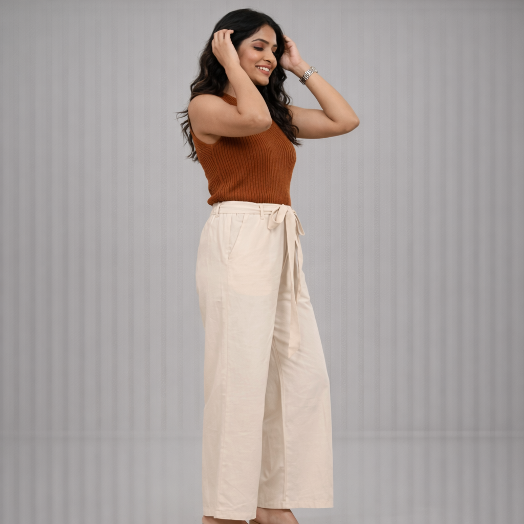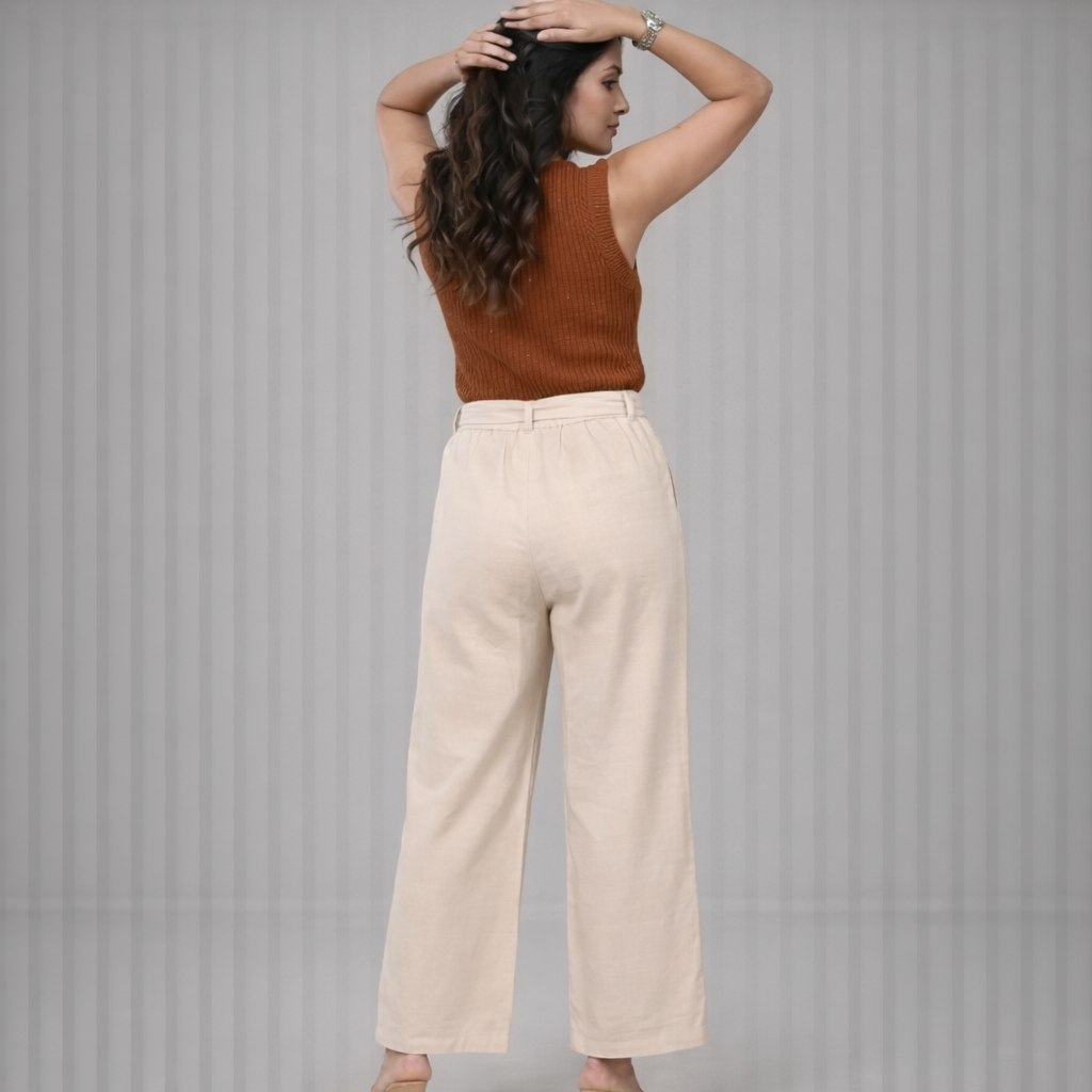The MODEUK Aira Cotton Trousers are designed for women who value comfort with a polished finish. Crafted from breathable premium cotton, these trousers offer a smooth feel and a clean silhouette that works seamlessly across daily wear and elevated casual looks.