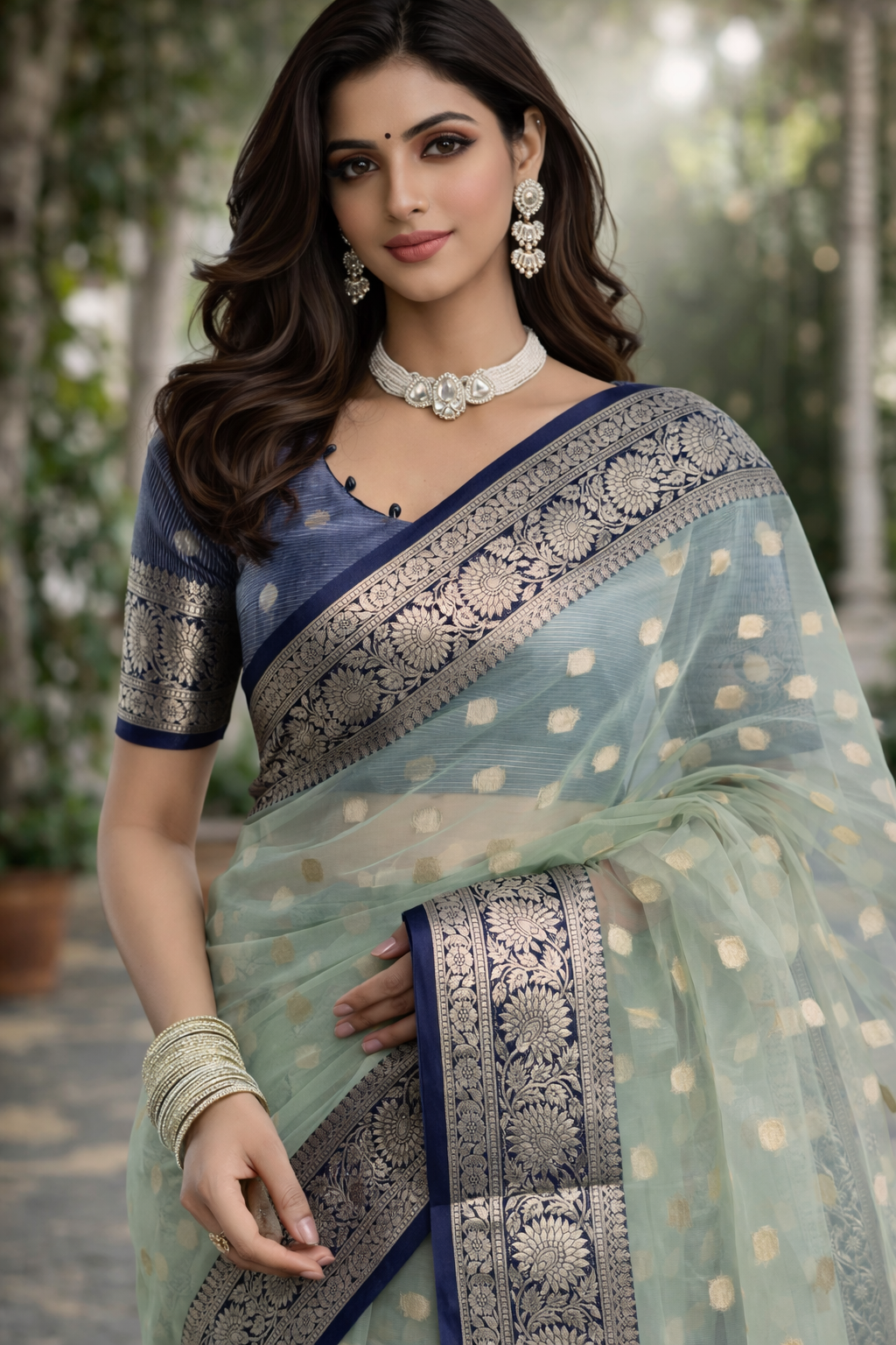 A refined organza saree designed for the global woman — delicate in fabric, powerful in presence.