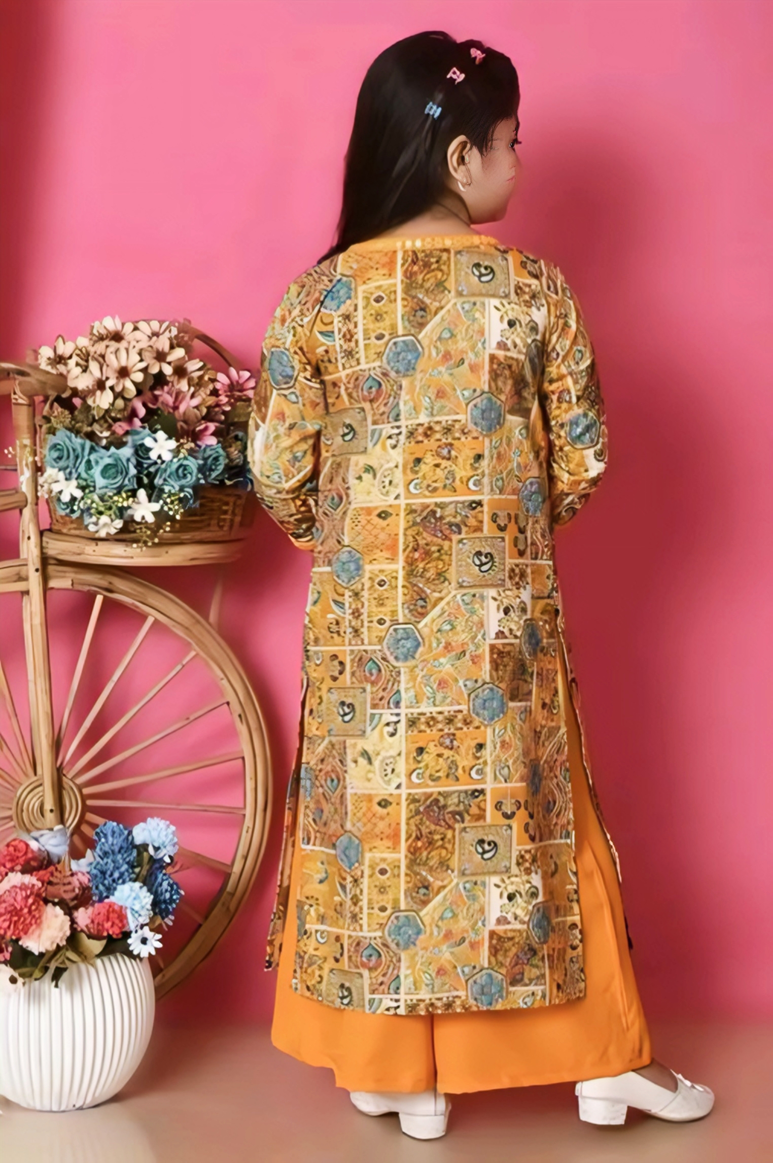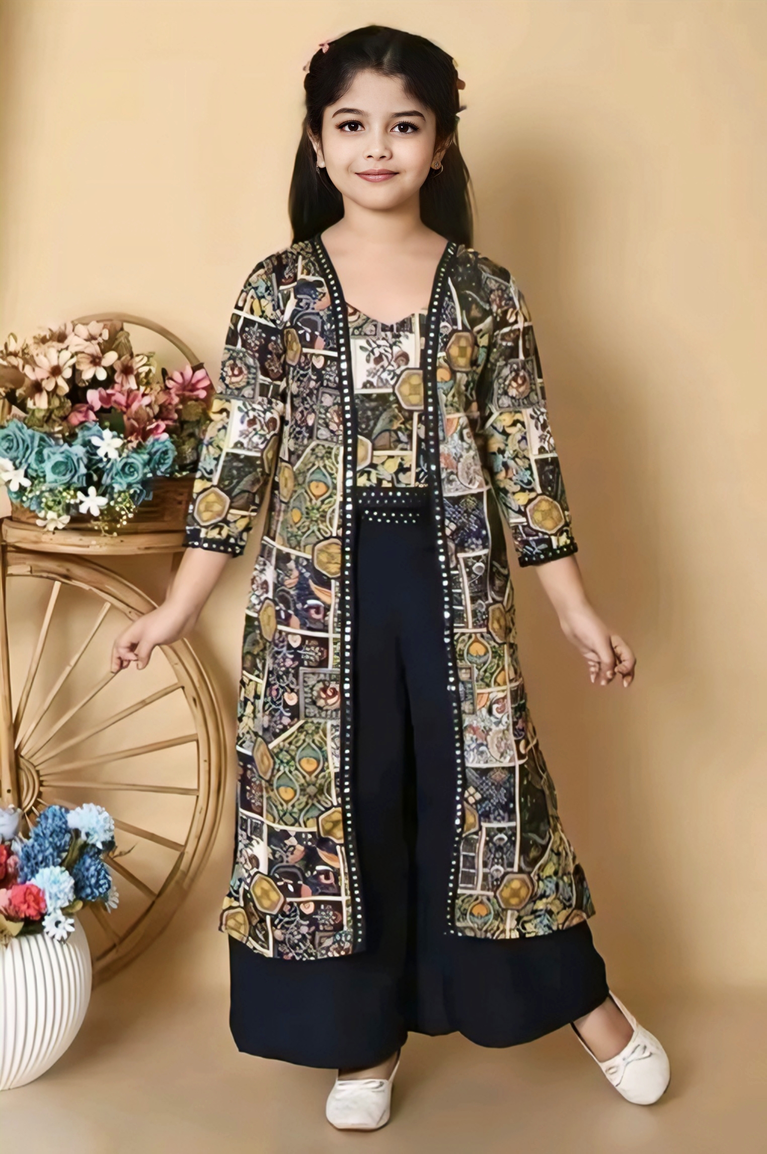 Made from soft, breathable cotton blend fabric, this 2-piece outfit includes a solid top with three-quarter sleeves and matching trousers for a coordinated, elegant look. The fabric feels gentle on the skin while keeping her comfortable through play, travel, or parties.
